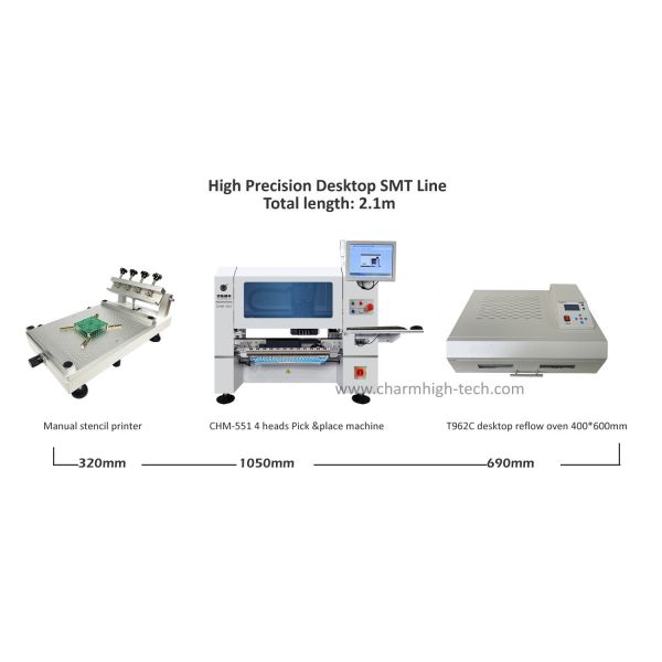 High Precision 0201 Desktop PCB Assembly Line 4 Heads CHM-551 SMD Pick and Place Machine Reflow Oven T962C Images |
