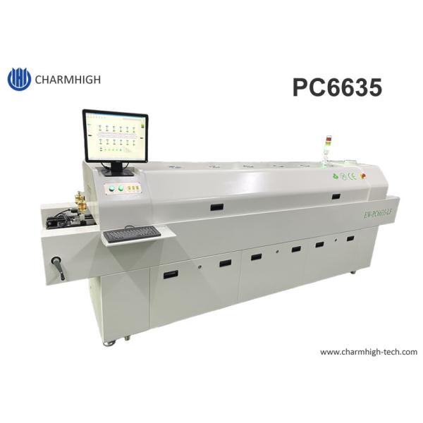 Full-automatic Rail 6 temp Zones Lead-free Reflow Oven 2200*350mm PC Control Heating Machine Images |